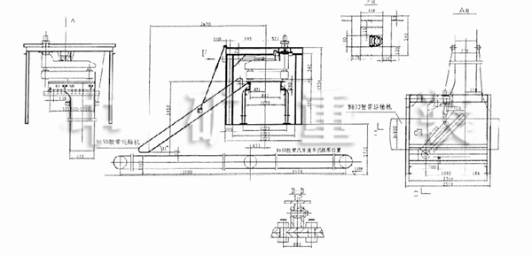 1、A向視圖中箭頭表示水泥包由B800膠帶運(yùn)輸機(jī)電動(dòng)轉(zhuǎn)彎溜子運(yùn)到B650膠帶機(jī)。