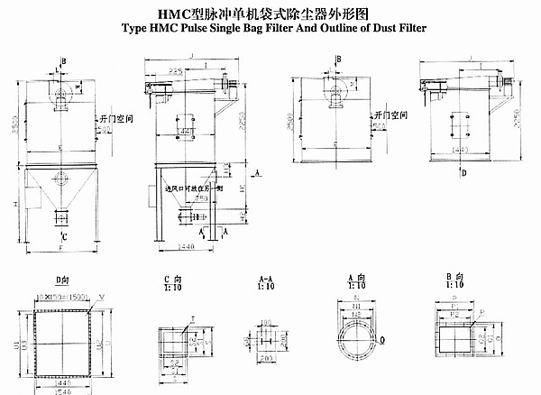 Type HMC pulse single bag filter is digested abroad and domestic same product by our company and designed small type bag filter. Bag filter is used pulse and spraying way. It is characterized by good dust efficiency, high clean efficiency, large handle volume, long life of filtering bag, small maintenance and dependable driving. It is widely used in metallurgical, building material, machinery, chemical industry and ore etc. all kinds of ore enterprise etc. non-fibre industry powder to purify dust and material reclaim.