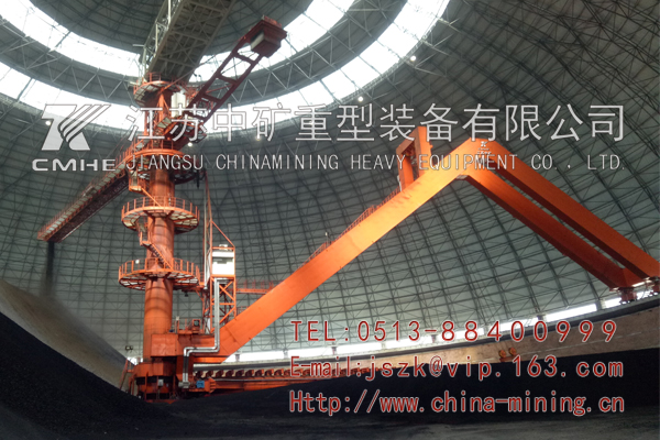 圓形料場堆取料機(jī)是懸臂堆料機(jī)與刮板取料機(jī)集于一體設(shè)備,是一種大型、環(huán)保、連續(xù)、 高效的散料裝卸機(jī)械,實(shí)用于碼頭、鋼鐵廠、水泥廠、大型火力發(fā)電廠和礦山等,可以裝卸鐵礦石(砂)、煤炭、砂子、石灰石、水泥等,圓形堆取料機(jī)被半球形網(wǎng)架外殼所籠罩,堆取料作業(yè)時集中于定心旋轉(zhuǎn)的回轉(zhuǎn)范圍內(nèi),不受臺風(fēng)等惡劣天氣的影響,同時產(chǎn)生的揚(yáng)塵范圍小,又被拘囿在固定的區(qū)域內(nèi),所以,它很好地解決了常規(guī)的敞開式條形煤場堆取料機(jī)作業(yè)時所產(chǎn)生的大量揚(yáng)塵對周邊環(huán)境造成的大范圍污染,既美觀又環(huán)保,綜合效益高,具備儲料量大、占地面積小、場地利用率高、安全可靠性高、環(huán)保效益好等優(yōu)點(diǎn)。取料和堆料作業(yè)時具備兩個層次分明的堆料回轉(zhuǎn)機(jī)構(gòu)和取料回轉(zhuǎn)機(jī)構(gòu),使堆料機(jī)和取料機(jī)形成兩套互不干涉、相對獨(dú)立的運(yùn)行系統(tǒng),實(shí)現(xiàn)同時進(jìn)行堆料和取料作業(yè)。我司目前有圓形堆取料機(jī)軌道直45m-120m各種規(guī)格。