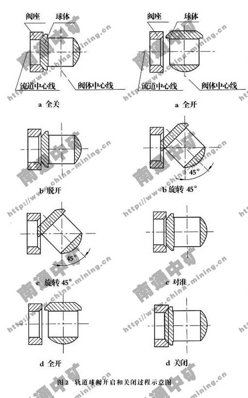 在關(guān)閉的狀態(tài)下,當(dāng)執(zhí)行機構(gòu)帶動閥桿向上運動,其閥桿底部的角形平面使球體密封面傾離閥座,閥桿繼續(xù)提升并與閥桿螺旋槽內(nèi)的導(dǎo)銷相互作用,使球體開始無摩擦旋轉(zhuǎn)90°直至閥桿提升位置,球體通孔對準(zhǔn)閥門通道。