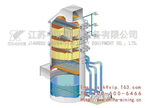 (10)布置靈活多樣:江蘇中礦擁有立式濕電除塵器和臥式濕電除塵器的成功工程經(jīng)驗(yàn),根據(jù)煙氣特性、排放要求、現(xiàn)場(chǎng)場(chǎng)地情況,靈活按立式和臥式來(lái)布置,也可將濕式電除塵器布置在脫硫塔的上部(頂置式),以節(jié)省場(chǎng)地。