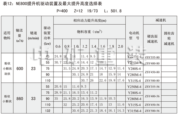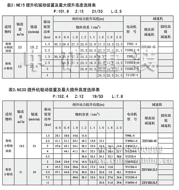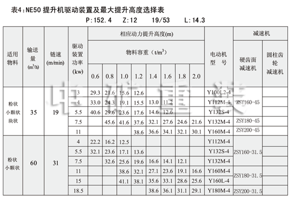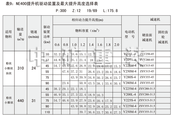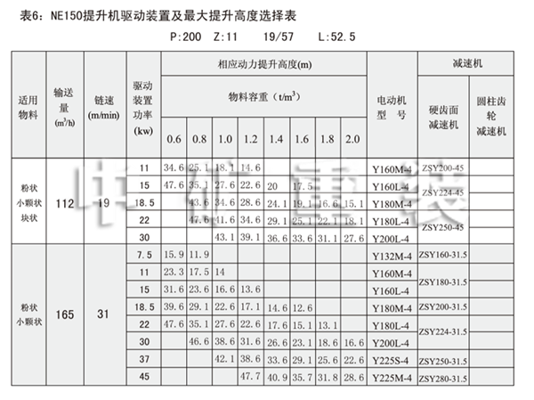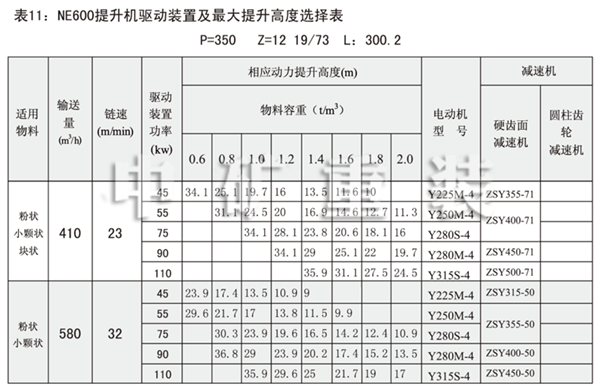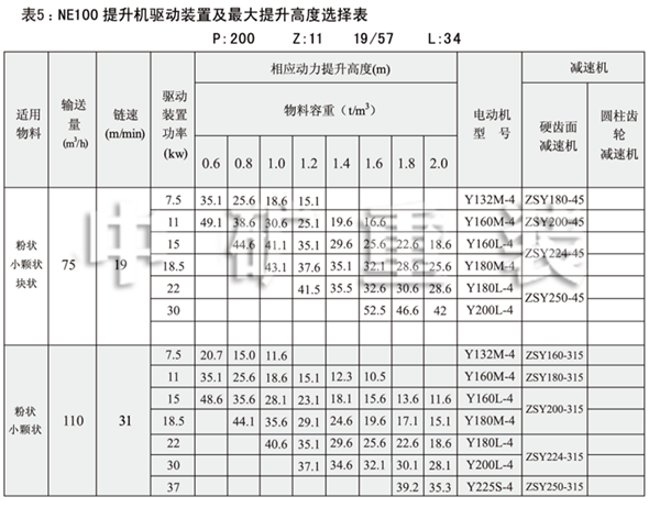 表1:NE板鏈斗式提升機(jī)技術(shù)規(guī)范表